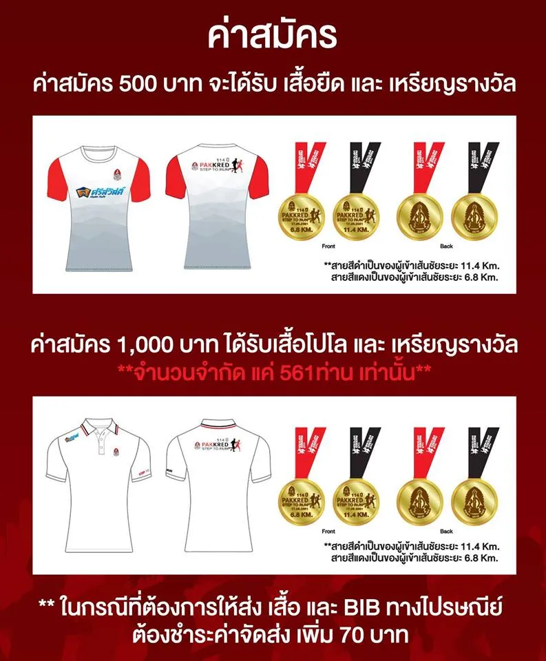 ** ผู้ชนะระยะ 11.4 กิโลเมตร จะได้รับ เหรียญ และ ถ้วยรางวัล ผู้ชนะระยะ 6.8 กิโลเมตร จะได้รับ เพียงเหรียญรางวัล มีการจัดประกวดการแต่งกายชุดแฟนซี ของรางวัล คือ ถ้วยรางวัล