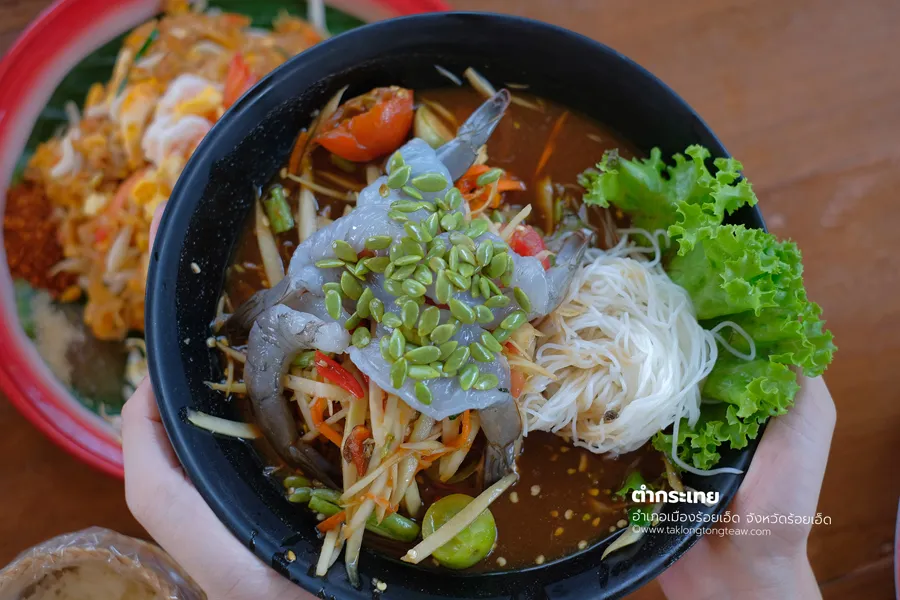 ชื่อแลดูไม่น่ากิน แต่ขอบอกว่าเมนูตำของที่นี่ฟินระดับ 5 ดาวอะเธอ ใครที่มีโอกาสไปเมืองร้อยเกินเราแนะนำเลย อ้อ!! ที่นี่ไม่ได้มีแค่เมนูตำนะเธอ เมนูอื่นๆ เขาก็มีไม่ว่าจะเป็น ไก่ย่าง ปลาเผา แกงอ่อม ผัดไทย ฯลฯ เอาเป็นว่าไปลองไปดูไปสั่งทานเองจ๊ะ ใครที่ชอบลมธรรมชาติร้านเขาก็มีโซนเอาท์ดอร์ให้ หรืออยากนั่งกินสบายๆในแอร์เย็นๆ ร้านเขาก็มีโซนอินดอร์ไว้บริการ มีหลายห้องด้วย ร้านค่อนข้างใหญ่อะเธอ มีพื้นที่บริเวณกว้าง ไม่แออัด แถมอยู่ชานเมืองอีกด้วย คือรถไม่ติดเดินทางสะดวกงี้ ที่สำคัญนักงานเสิร์ฟ พนักงานรับออร์เดอร์ ผู้ หน้าตาจิ้มลิ้ม หุ่นลีนๆ แต่กล้ามแน่นปัก คือแบบว่าน่ารัก…งี้