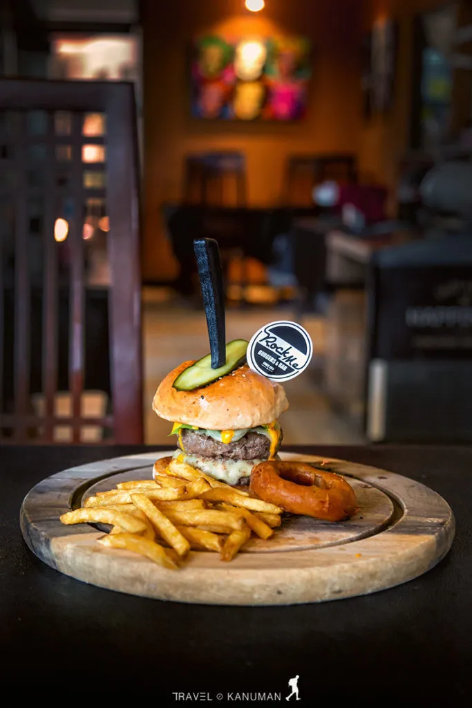 FUSION กันหน่อย ใครที่กินอาหารพื้นถิ่นมาหลายมื้อติดแล้วอยากเปลี่ยนบรรยากาศ แนะนำให้จัด “Rock Me Burgers & Bar ” Burger ดีงามมาก เนื้อเด่น กิมมิคคือ จานโต ราคาไม่แพงเลย แต่ที่โดนสุดคือ สปาเกตตี้คาโบนาร่า เส้นคลุกชีสมาเต็มๆ เบคอนกรอบมาก และที่เหนือคาดคือ เฟรนฟรายชีสเบคอนกรอบ กับ Golden Wing ด้วยสูตรไก่ทอดเนื้อนุ่มหนังมีรสกระเทียมผสมกลมกล่อมมาก ❤ สั่งมาหลายอย่างสนนราคารวมทั้งหมด 900กว่าบาท จะถูกไปไหน