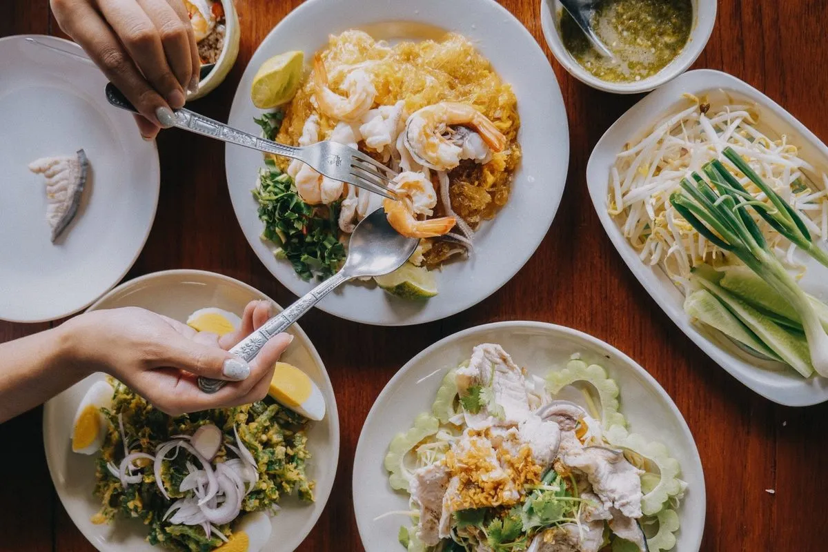 หลังจากขับรถออกจากบึงกระจับใหญ่ได้สักพักก็รู้สึกหิวนิด ๆ พวกเราจึงตรงดิ่งไปกันที่ร้านต้นตะขบ ร้านเด็ดเก่าแก่กว่า 30 ปี ร้านนี้อยู่เลยเขื่อนเจ้าพระยาไปหน่อย บรรยากาศหน้าร้านเต็มไปด้วยต้นตะขบที่เป็นที่มาของชื่อร้าน ภายในร้านก็บ้าน ๆ ง่าย ๆ แต่มีความคลาสสิก เมนูเด็ดห้ามพลาดที่เราภูมิใจนำเสนอก็คือ ผัดไทวุ้นเส้นสูตรโบราณ เส้นนุ่มกำลังดี ผัดมาเสิร์ฟด้วยเครื่องแน่น ๆ รสชาติกลมกล่อมแบบใส่ใจรายละเอียดทุกกระบวนการทำ ใครได้กินเป็นต้องติดใจทุกคนเลย ขนาดคุณสมัคร สุนทรเวชยังมากินเป็นประจำเลยนะแก และนอกจากเมนูผัดไทที่เราเล่าให้ฟังว่าเด็ดแล้ว ถ้าใครชอบทานปลาน้ำจืดสด ๆ ไม่คาว ที่นี่ก็เด็ดไม่แพ้กัน เดินเข้ามาสั่งได้เลยไม่ผิดหวังอย่างแน่นอน
