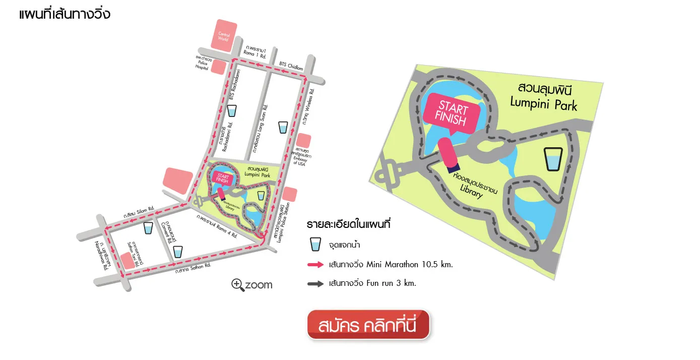 1. วิ่งมินิมาราธอน 10.5 กม. ชาย / หญิง อายุ 15-29 ปี, 30-39 ปี, 40-49 ปี และ 50 ปีขึ้นไป