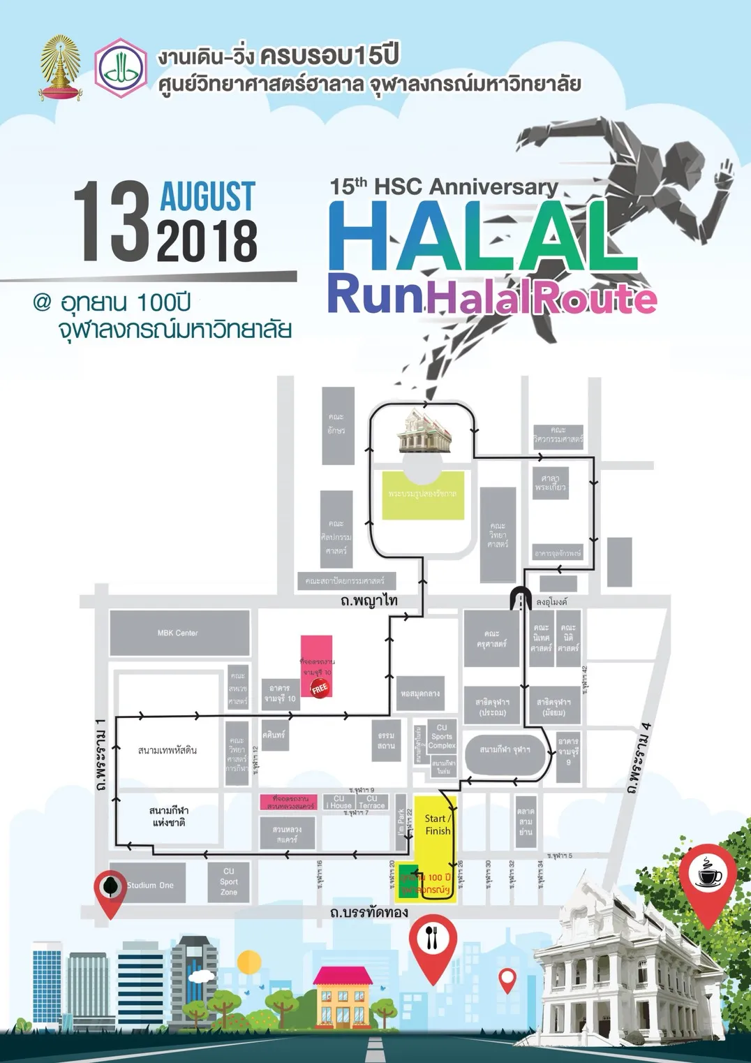 ขอเชิญชวนทุกท่านร่วมงาน “เดินวิ่งครบรอบ 15 ปี ศูนย์วิทยาศาสตร์ฮาลาล จุฬาฯ Halal Run – Halal Route” ณ อุทยาน 100 ปี จุฬาลงกรณ์มหาวิทยาลัย ในวันที่ 13 สิงหาคม 2561 ตั้งแต่เวลา 05.00 น. เป็นต้นไป ระยะทาง 5 กิโลเมตร