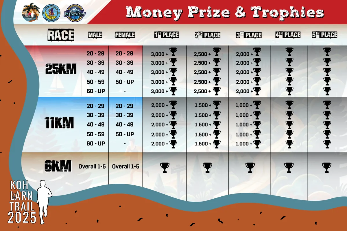 Receiving prizes • Runners who rank in the prizes and act correctly according to the rules. Report after crossing the finish line at the point specified by the committee within 30 minutes. • After 30 minutes, if you have not yet reported. It is considered that the right has been waived. • Presenting yourself to receive the prize. It is necessary to have the BIB number clearly displayed, correct as registered, and have the correct first and last name as shown on the ID card or passport. And you must show your ID card or travel book.