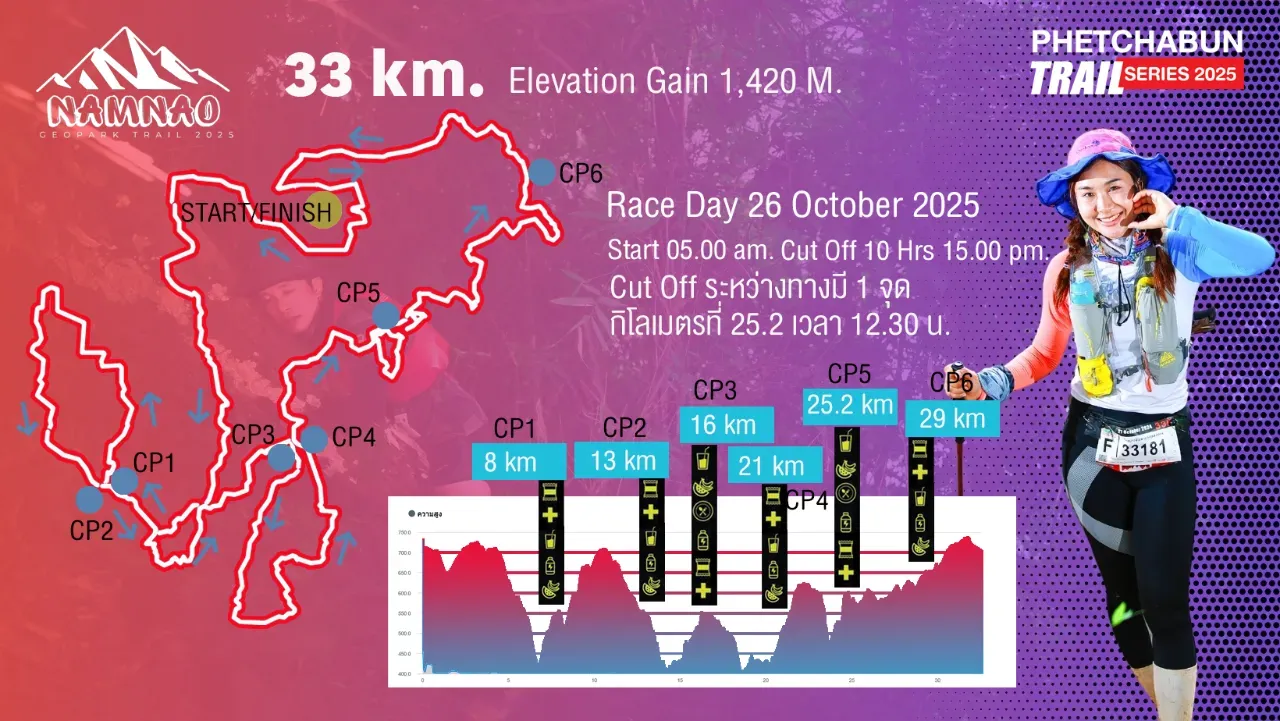 | 05:00 - 15:00 | Runners are released for a distance of 33 km and a total of 10 hours of competition. |