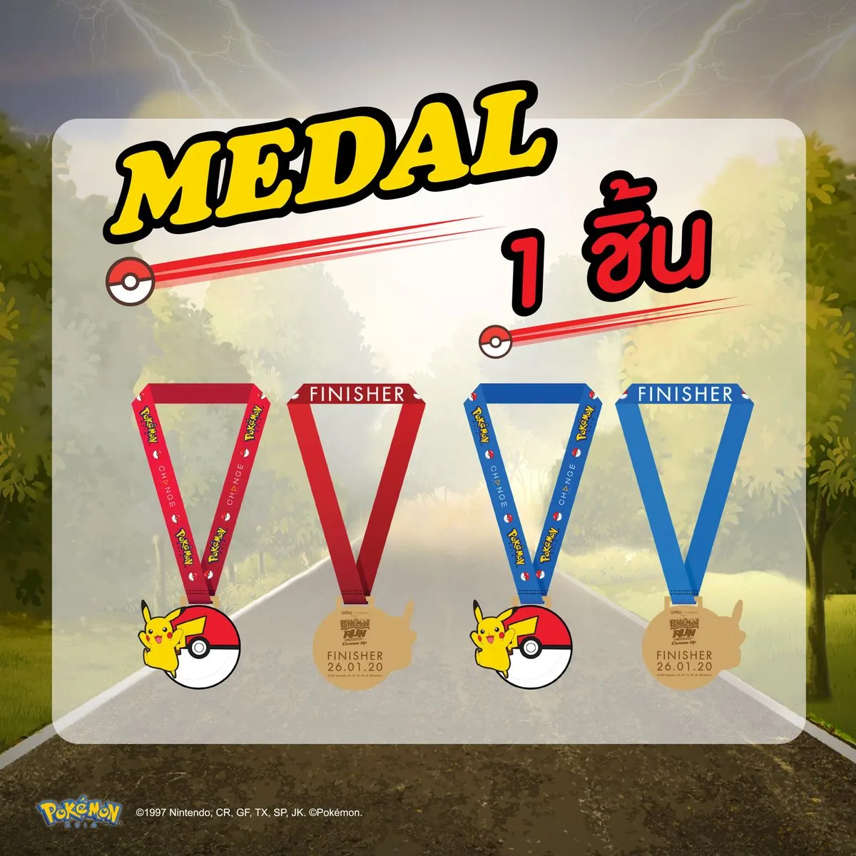T-Shirt , Medal, BIB, Drawstring Bag, Visor Pikachu ©Pokémon. For sale in Thailand only. Licensed by CINEPLEX. Produced by CHANGE2561