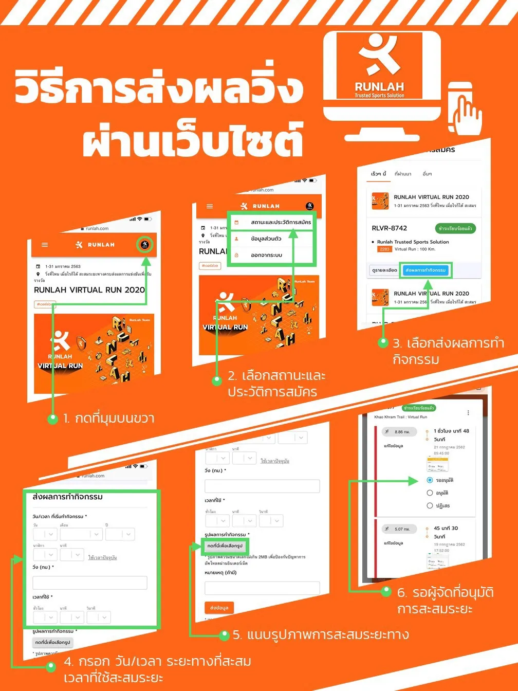 • ส่งผลวิ่งทาง https://www.runlah.com/user/registers