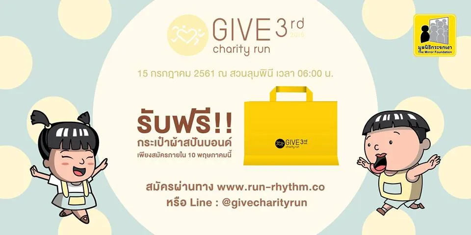 Give Charity Run April 19 at 5:26pm · กลับมาร่วมวิ่งและ “แบ่งปัน” สิ่งดีๆ กันอีกครั้ง Give Charity Run ครั้งที่3