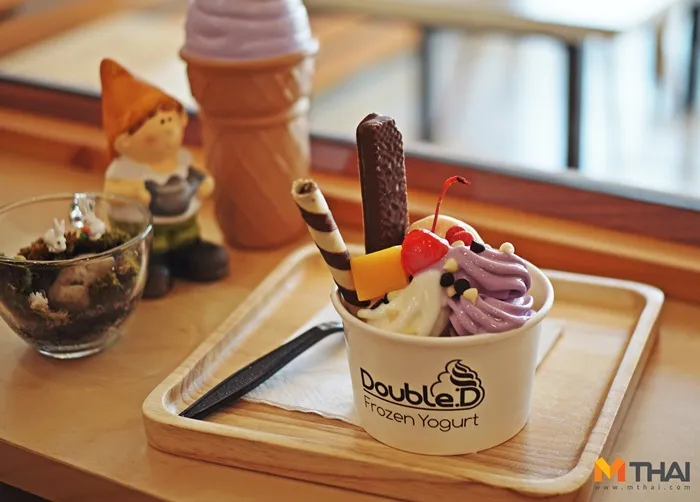 ดับร้อนด้วยไอศกรีมโยเกิร์ต จากร้าน Double Frozen Yogurt Bar ร้านเล็กๆ ที่ตั้งอยู่ตรงถนนมิตรภาพ ติดกับโรงพยาบาลราชพฤษ์แห่งใหม่ (ทางเข้าหมู่บ้านไทยสมุทร) ในร้านตกแต่งน่ารัก ให้บรรยากาศสบายๆ Double Frozen Yogurt Bar เป็นร้านไอศกรีมแบบบริการตัวเอง เลือกรสเอง กดเอง ใส่ท๊อปปิ้งเอง นอกจากจะได้กินไอศกรีมเย็นชื่นใจแล้ว เรายังได้สนุกไปกับการครีเอท แต่งหน้าไอศกรีมเองอีกด้วย ^^