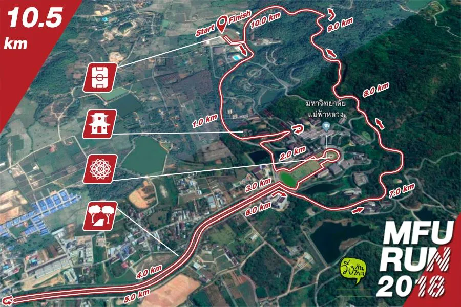 มาสัมผัสอากาศเมืองเหนือสุดชิวในช่วงสิ้นปี และบรรยากาศในมหาวิทยาลัยแม่ฟ้าหลวงที่ว่ากันว่าเป็น "จุดชมวิว" ได้ทุกจุด พร้อมกับกำลังใจตลอดเส้นทางวิ่งจากกองเชียร์น้องๆในมหาวิทยาลัยที่จะทำให้นักวิ่งทุกคนวิ่งกันได้แบบไม่มีเหนื่อย