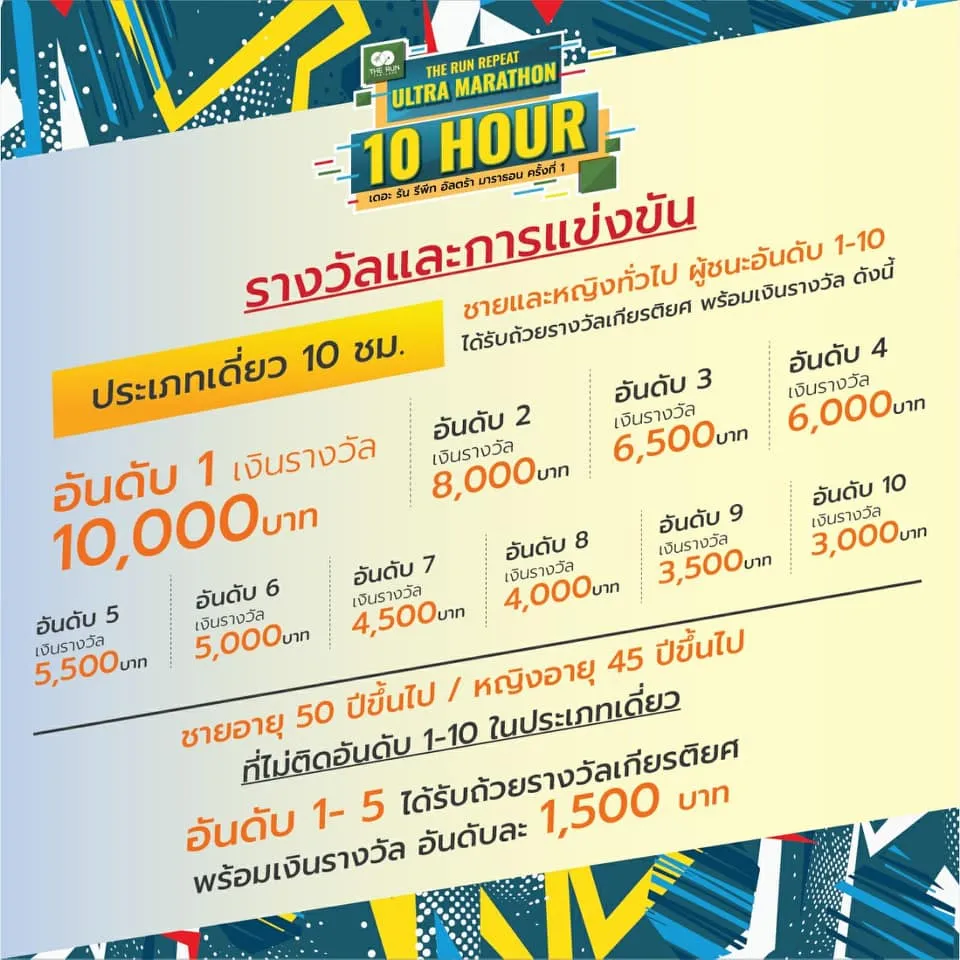 18:15 ปล่อยตัวนักวิ่ง ประเภทเดี่ยว 10 ชม.